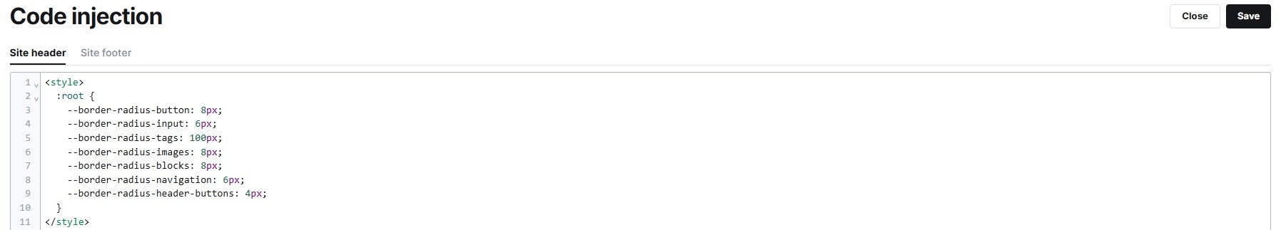 3. In the provided space, specify the desired border-radius using the appropriate CSS variable. For example: