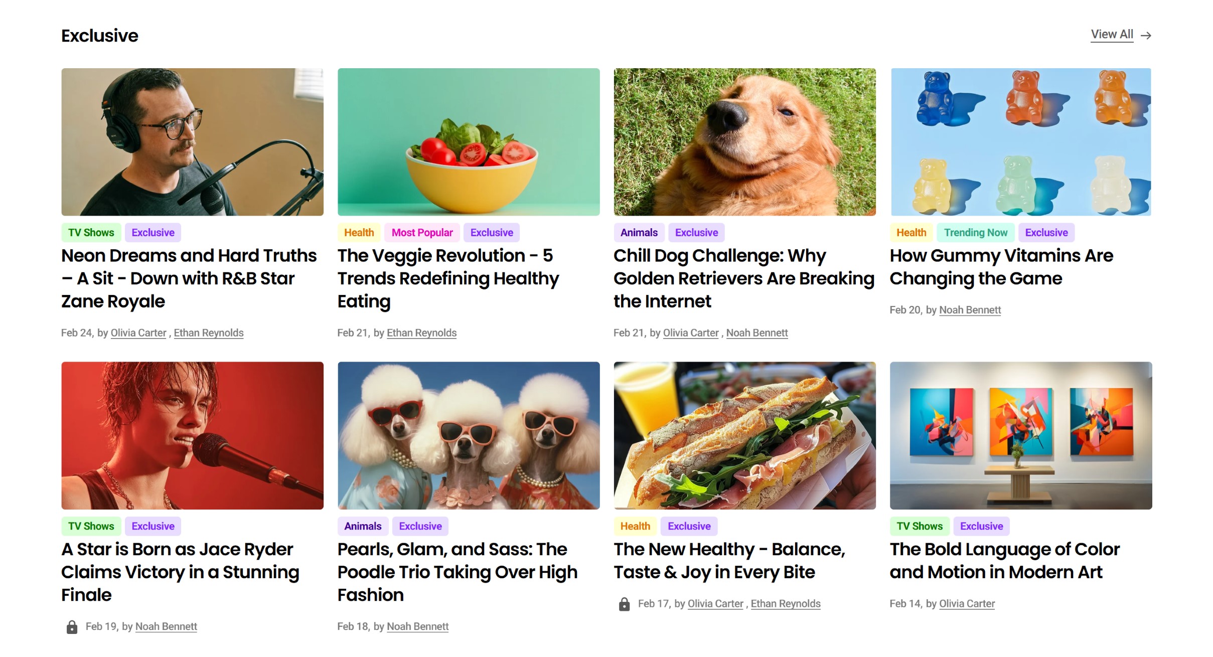 13. **List + Sidebar with Featured Posts and Advertisement and Widget**
