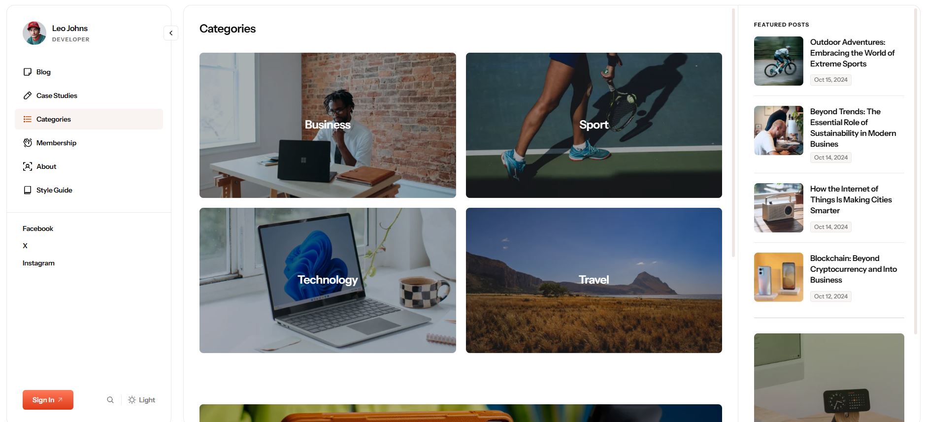 **Principle** has a template for the **Categories (tags) page**, which shows all of the categories (tags) of your publication. A categories page is not required, but you can add it if you want.