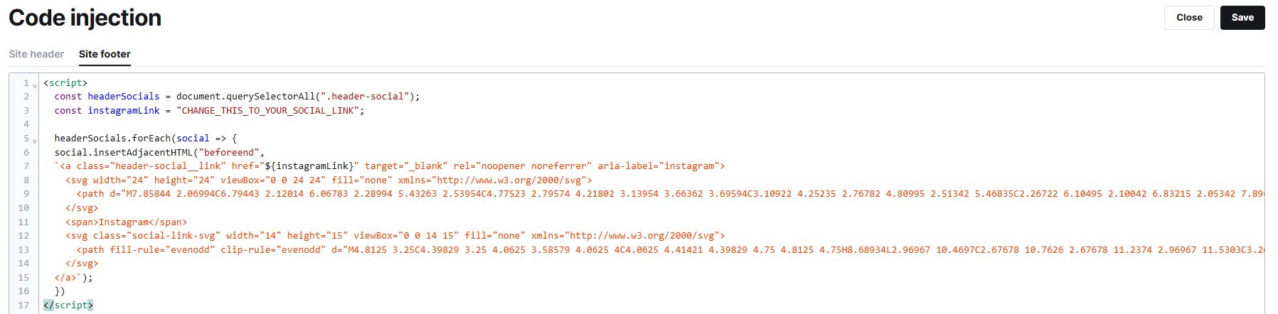 * Copy this code and paste it inside **Site footer** input area